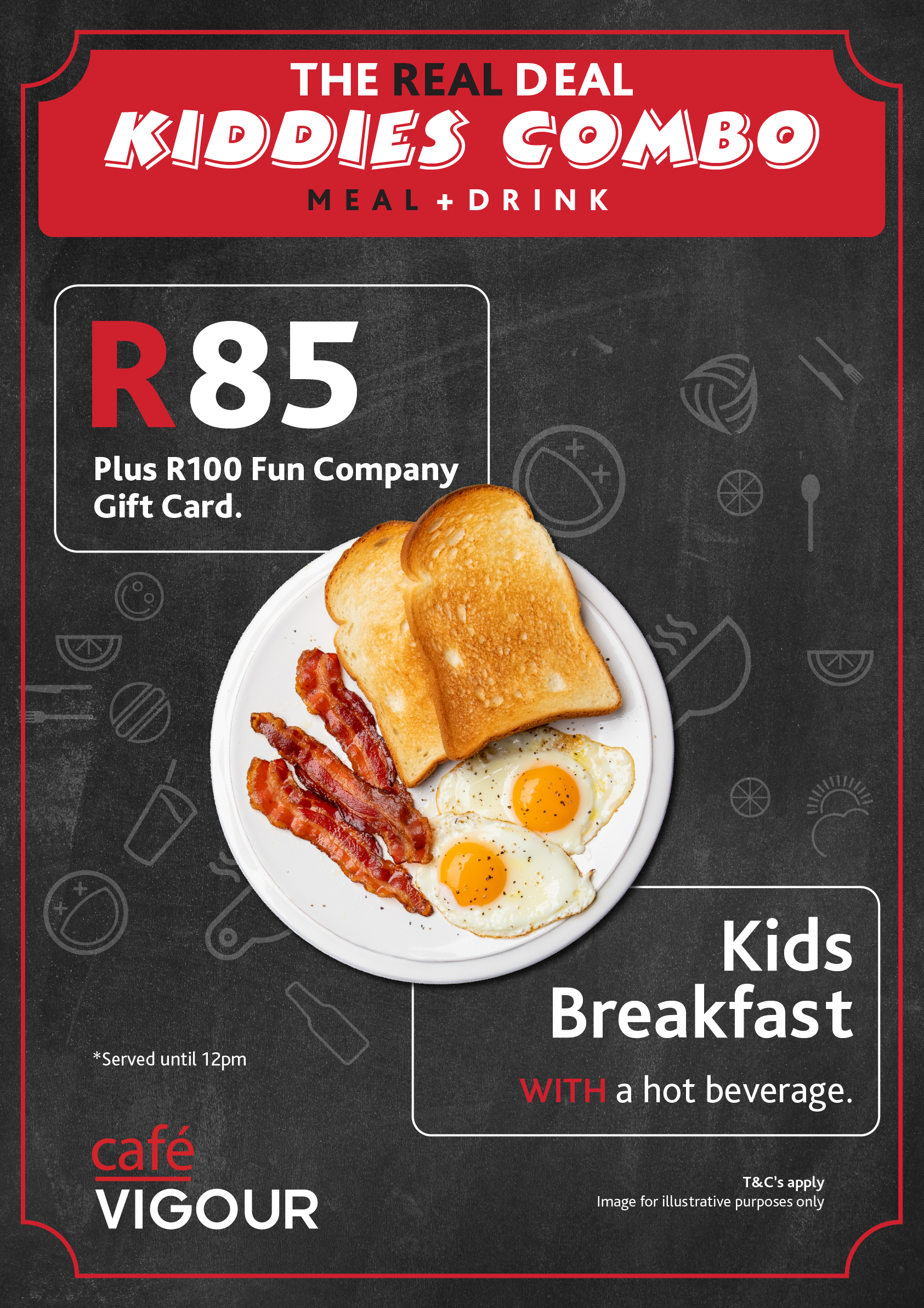 Breakfast Deal (R85): Eggs, bacon, toast + hot beverage